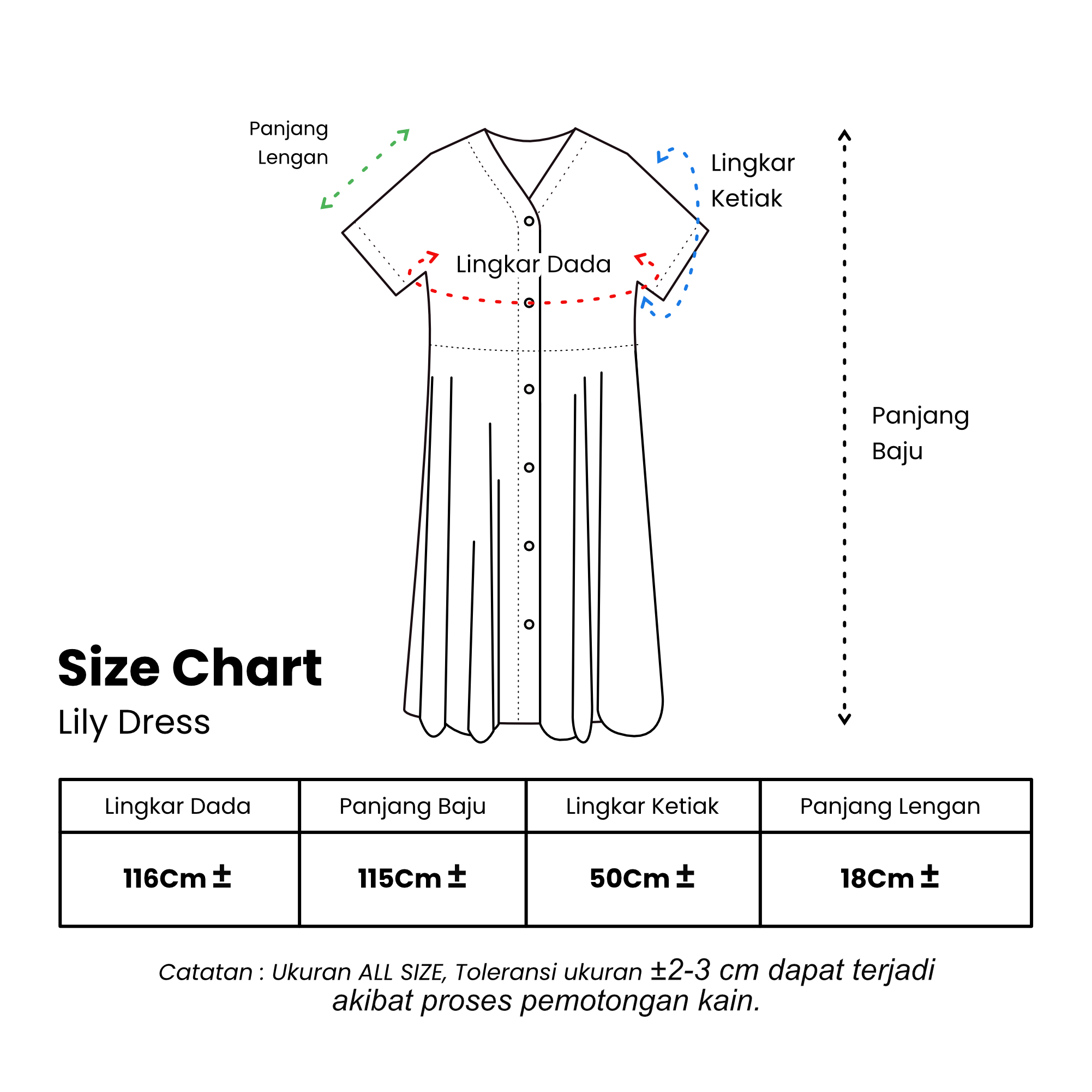 Panjang baju 110cm±